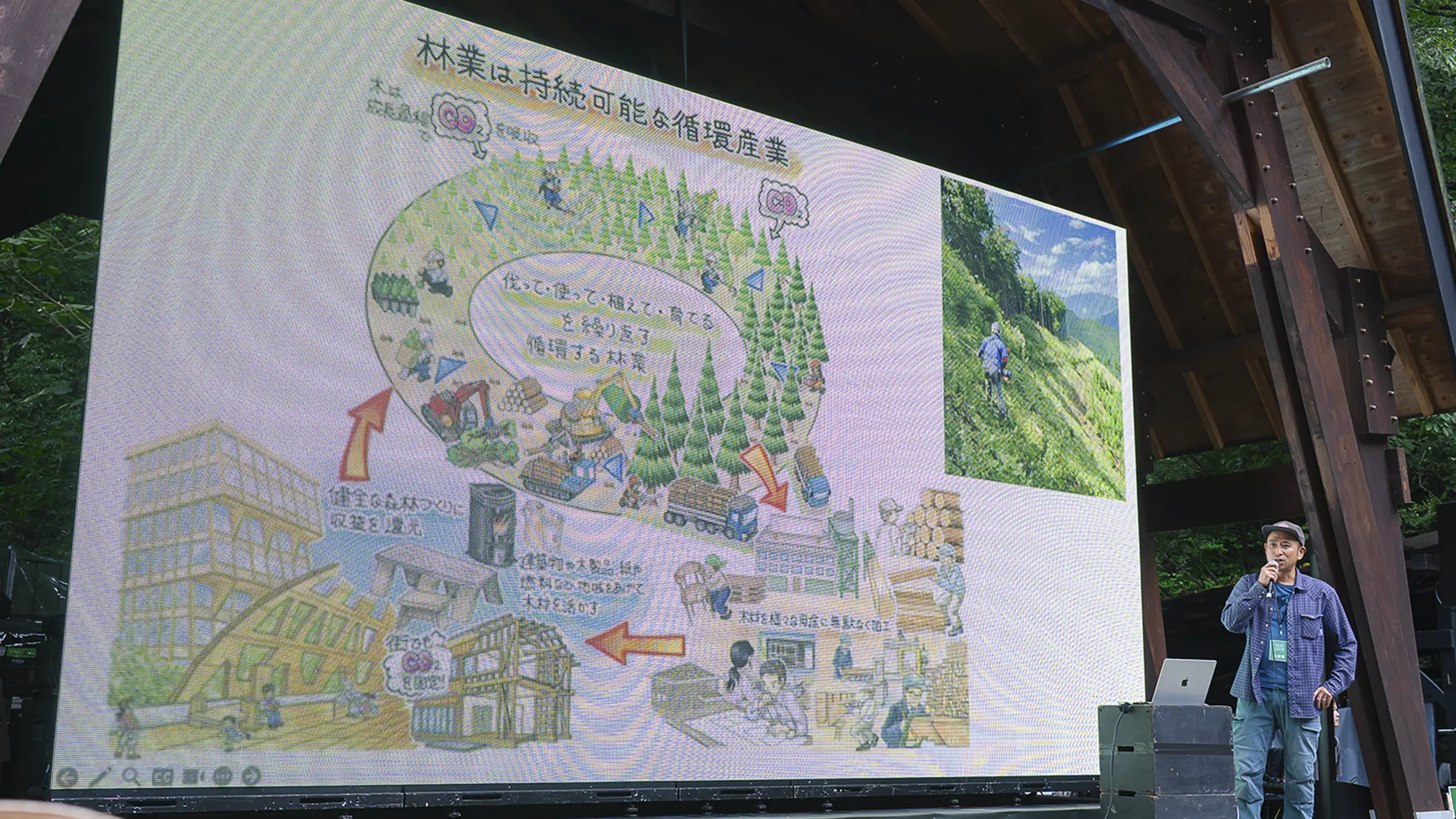 「今日のイベントでは、森をもっと身近に感じてもらうために、僕ら林業家の仕事を映像も交えて紹介しましたが、入り口はどんな形でもいいので、少しでも森に興味を持つ人が増えてくれたら嬉しいです。